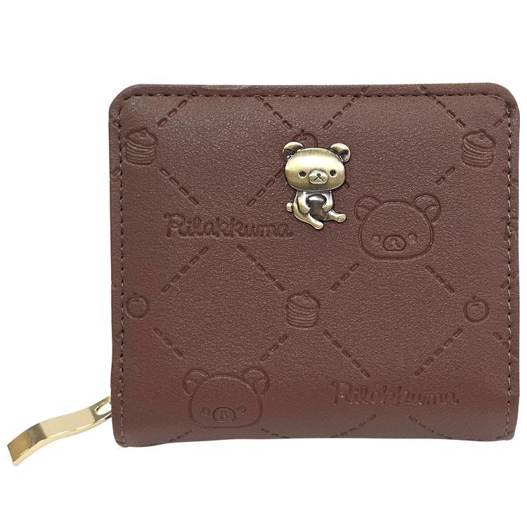 Rilakkuma Bifold Wallet Grid embossing Brown San-X Japan 2026