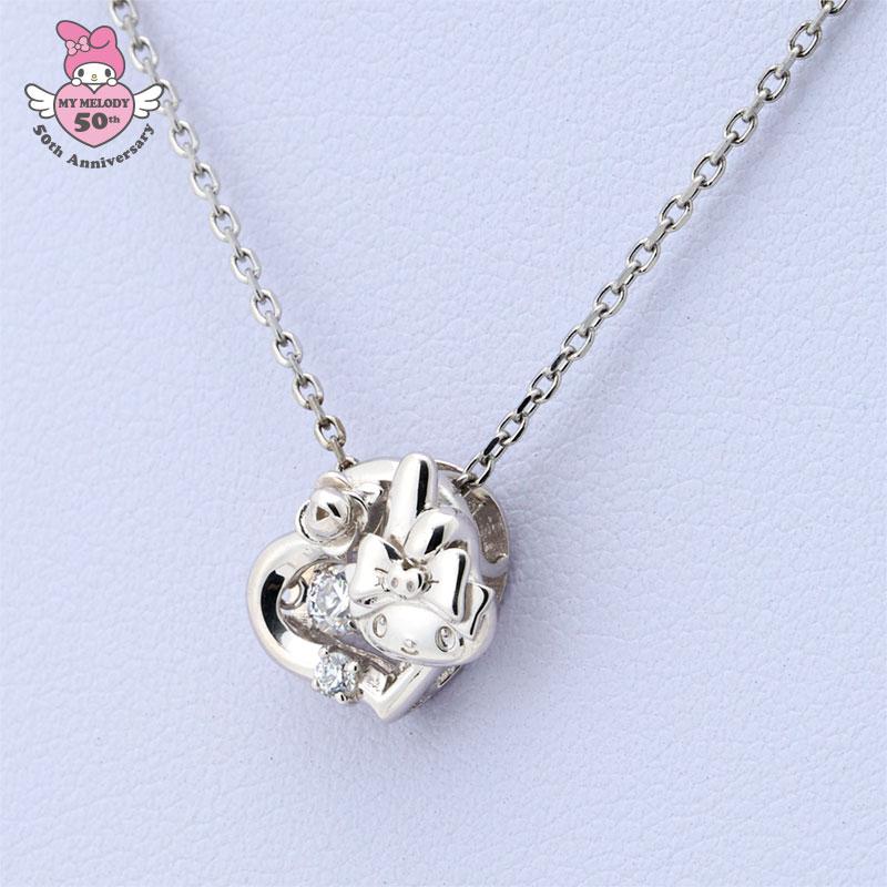 My Melody 50th Anniversary Dancing Stone Necklace Heart Silver Sanrio Japan